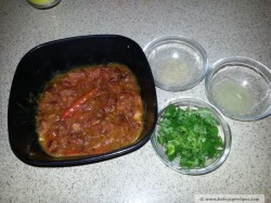 - अब हमने जिस पैन में मसाला बनाया था उसी में थोडा सा तेल डाले और कटे हुए प्याज को डालकर भून ले. इस बार हमे प्याज को ज्यादा नही भूनना है, जब तक प्याज भुनता है तब तक हम धनिया पत्ती काट लेते है।