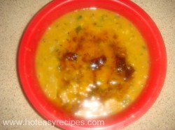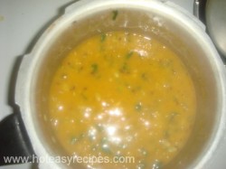 - सीटी निकल जाने पर कूकर खोले और दाल को स्पून से हल्का-हल्का मैश कर दे. अब कटा हुआ हरा धनिया डाले और प्याले में निकाल ले, अब हम इस में देसी घी का तड़का लगायेगे.