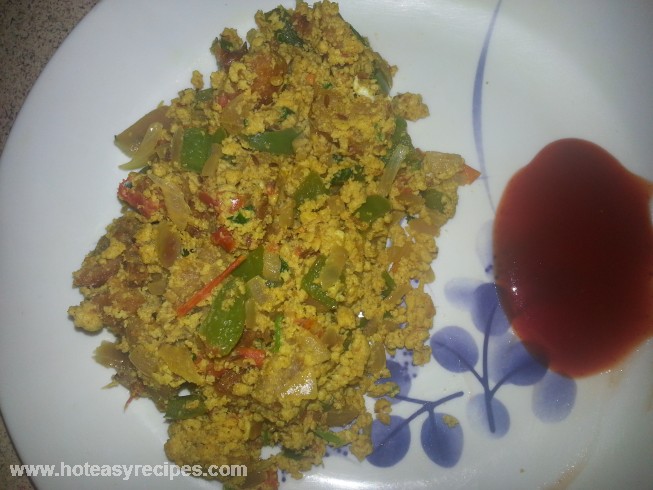 - अब मीडियम गैस पर इसे चलाते रहे जब तक की एग पूरी तरह से दानेदार हो जाए. लीजिये आपकी एग भुर्जी तैयार है. अब इसे टोमेटो सॉस के साथ सर्व करे. नोट: आप अगर चाहे तो तो मतों सॉस पहले ही एग भुर्जी में मिला सकते है, अगर आप सॉस उस में डालना चाहते है तो एग डालने से पहले अपने स्वाद के अनुसार सॉस मिला ले).
