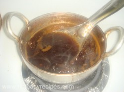• अब इमली के पेस्ट और चीनी को एक प्याले में मिला ले. गैस पर कड़ाई रखे और उसमें इसे डाल कर उबलने रख दे.