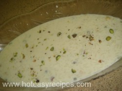 - लीजिए आपकी खीर तैयार है, अब आप इसे पिस्ते से सजा कर गरमा गरम या फिर ठंडा करके सर्व करे.खीर को और भी स्वादिष्ट बनाने के लिए काजू, पिस्ता, बादाम को बारीक पीस कर खीर में मिला दे. खीर में और भी ज्यादा स्वाद आ जायेगा. आप चाहे तो केसर भी डाल सकते है.