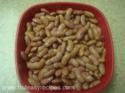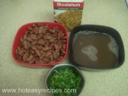 - एक कटोरी राजमा को रात भर के लिए भिगो दे. अब कूकर में राजमा ,5 कटोरी पानी , बेकिंग पाउडर और नमक डाल दे. कूकर को गैस पर रख दे और 2 सीटी आने के बाद गैस को कम कर दे, अब इसे 5 मिनट और पकाए और फिर गैस बंद कर दे. जब सीटी निकल जाए तो कूकर को खोल ले. अब राजमा निकाल ले और पानी को भी निकाल कर अलग रख ले. बाद में हम इसी पानी को जरुरत के अनुसार इस्तेमाल करेगे.