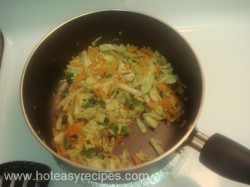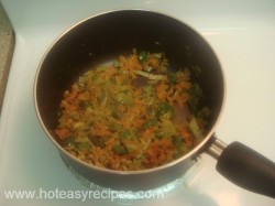 • सारी सब्जियों को बारीक काट ले. अब एक पैन ले और उसमें जरा सा तेल डाले. जब तेल गरम हो जाए तब सारी सब्जिय डाल कर अच्छे से फ्राई कर ले. आप इस में अपने मन की कोई भी सब्जी डाल सकते है और कोई भी हटा सकते है.