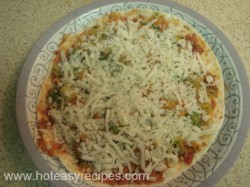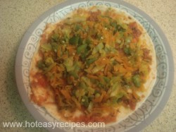 • इसके ऊपर सब्जी फैला दे और फिर चीज डाल दे.