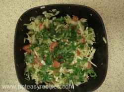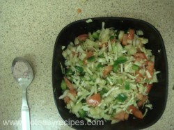 • सारी कटी हुई सब्जी को एक डोगे में मिला ले. अब इसके मसाले के लिए तेल, नमक, चीनी, जीरा पाउडर, अदरक का रस (आप चाहे तो वर्ना रहने दे) और नीबू का रस  ले.